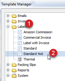 2. Expand the Labels folder on the list of templates on the left side of the Template Manager screen. Then, select the Standard 4x6 template.
