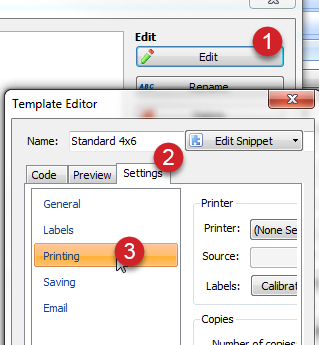 3. Click the Edit button, select the Settings tab, then click on Printing.
