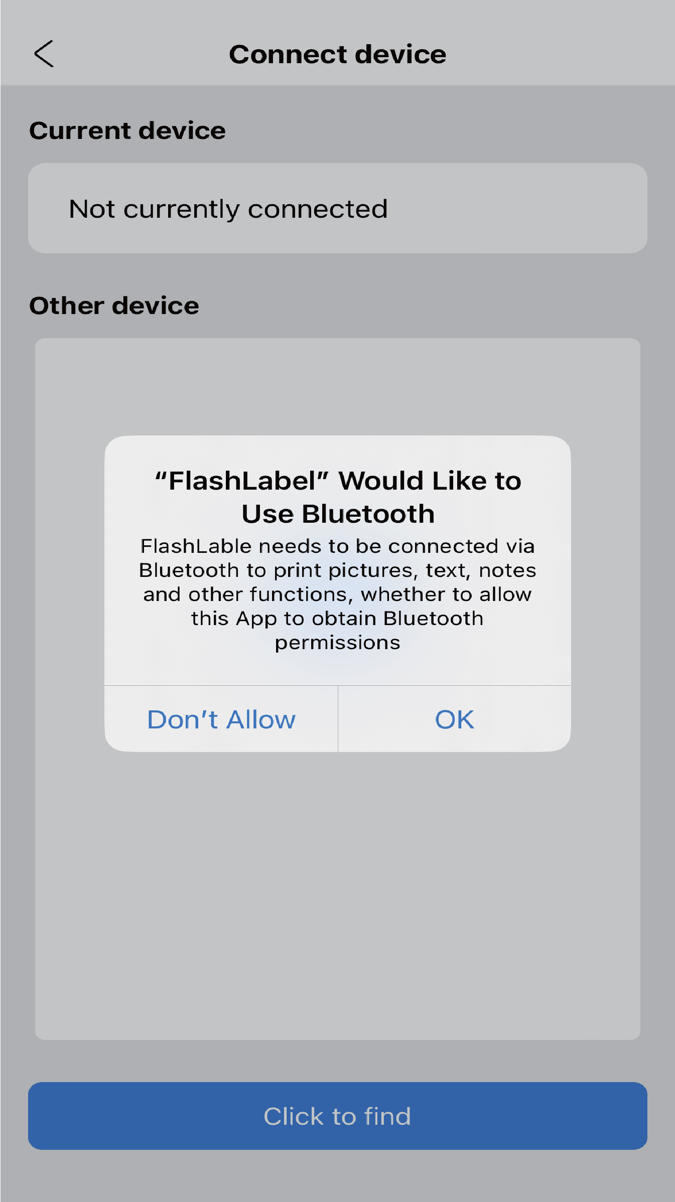 - 2. Open and run the app and click OK if the app ask for Bluetooth permission.